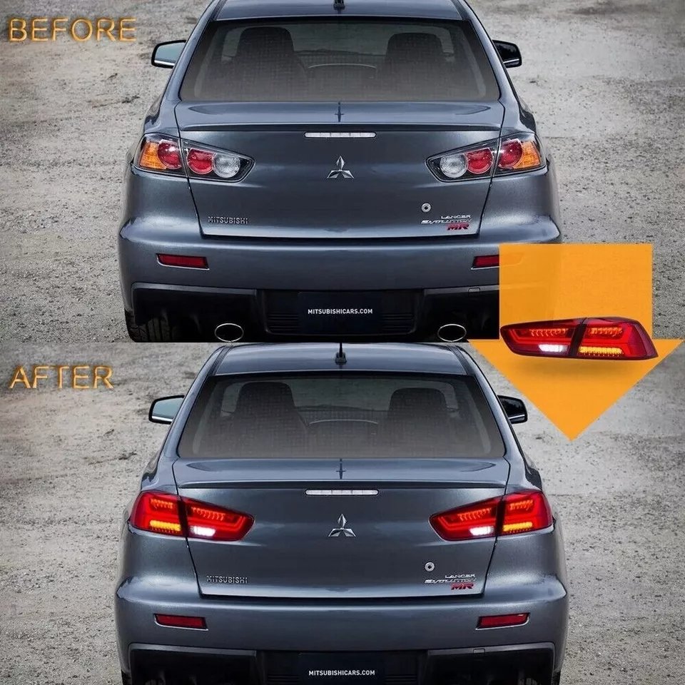 Direct OEM Fitment – Full LED red and smoked tail lights assembly Compatible for Mitsubishi Lancer & EVO X 9th Gen 2008 2009 2010 2011 2012 2013 2014 2015 2016 2017 (NOT for Sportbacks). Driver & Passenger Side. Designed to be an exact replacement with no vehicle modifications. (If you can not confirm, tell us and we will help)