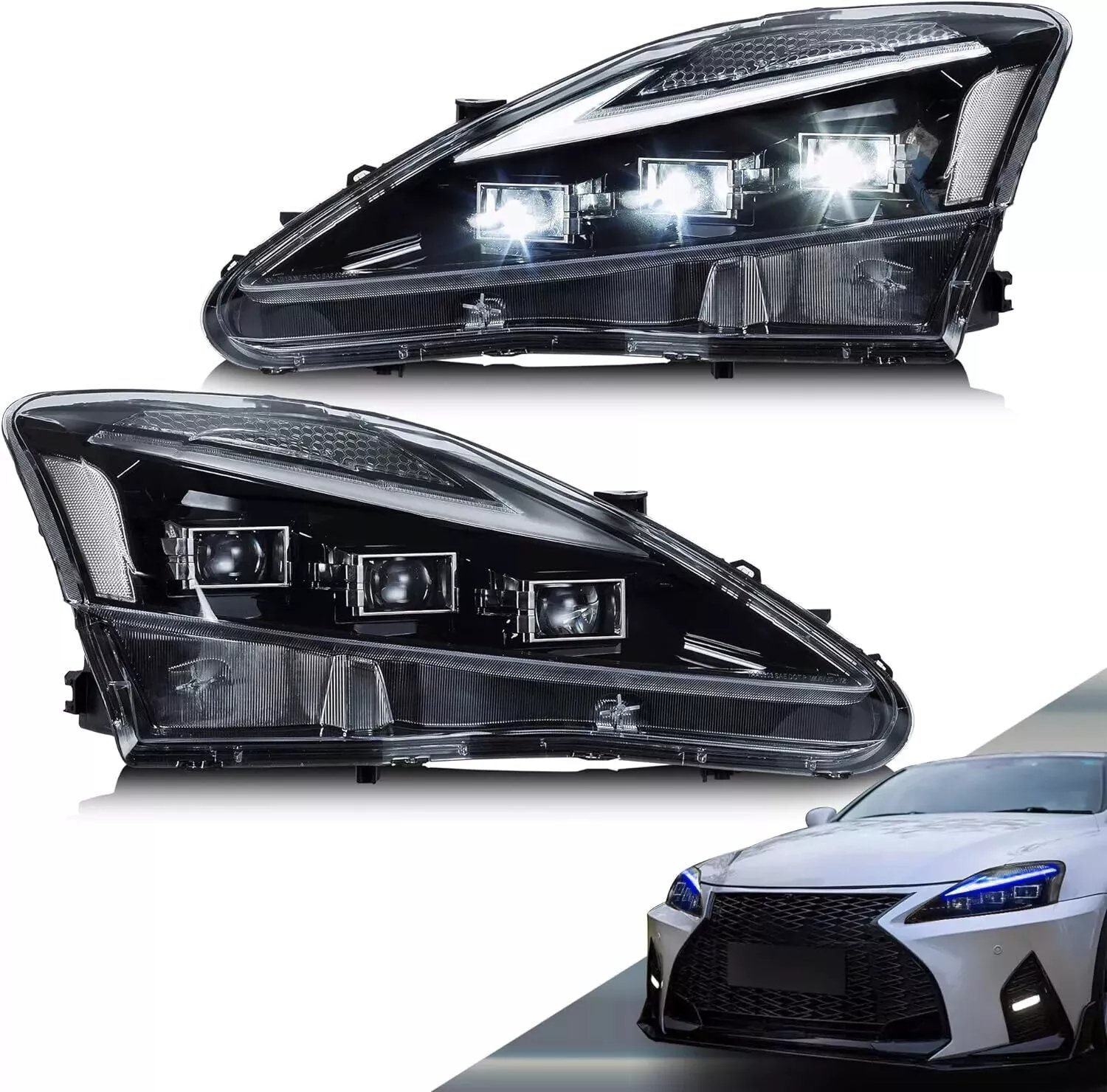 OEM Direct Fitment: Compatible for LEXUS IS250, IS250C, IS350, IS350C ISF, IS220d 2006 2007 2008 2009 2010 2011 2012. Package includes complete set of headlights, one for each side.