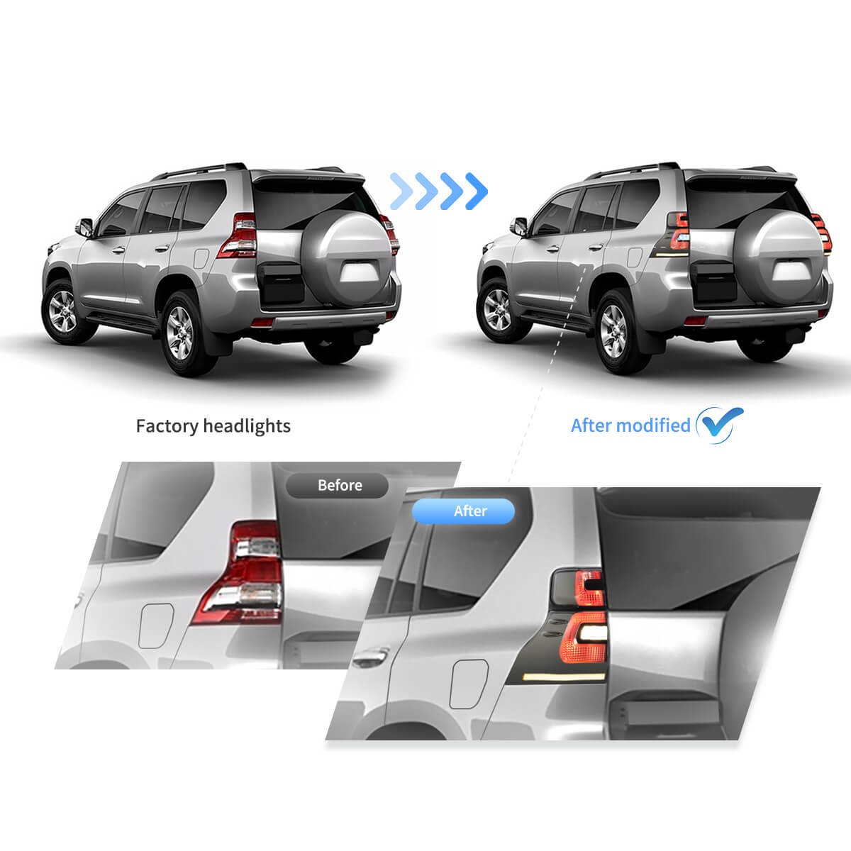 – Plug & Play, simply remove stock tail lights and connect new lights that connect to stock terminals! Fits stock mounts.
