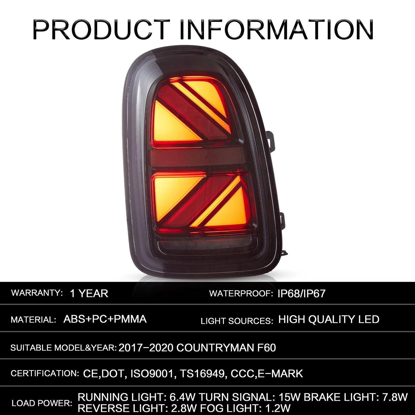 VLAND Pair Tail Lights For 2017-2020 MINI Cooper Countryman F60